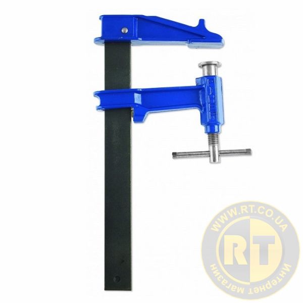 Поршнева струбцина має щоки виготовлені з чавуну та покриті епоксидною фарбою. Супер стійка, завдяки кованій направляючій (90 кг/мм2). Оснащена системою запобігання ковзанню нижньої щоки. Направляюча має антикорозійне покриття.