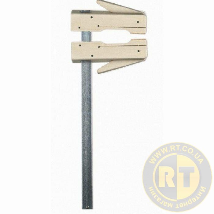 Дерев'яний затискач оснащений цинкованою сталевою ручкою та антиковзаючими гальмами на рухомій щоці.