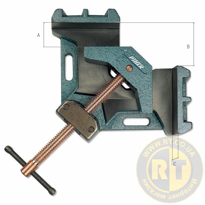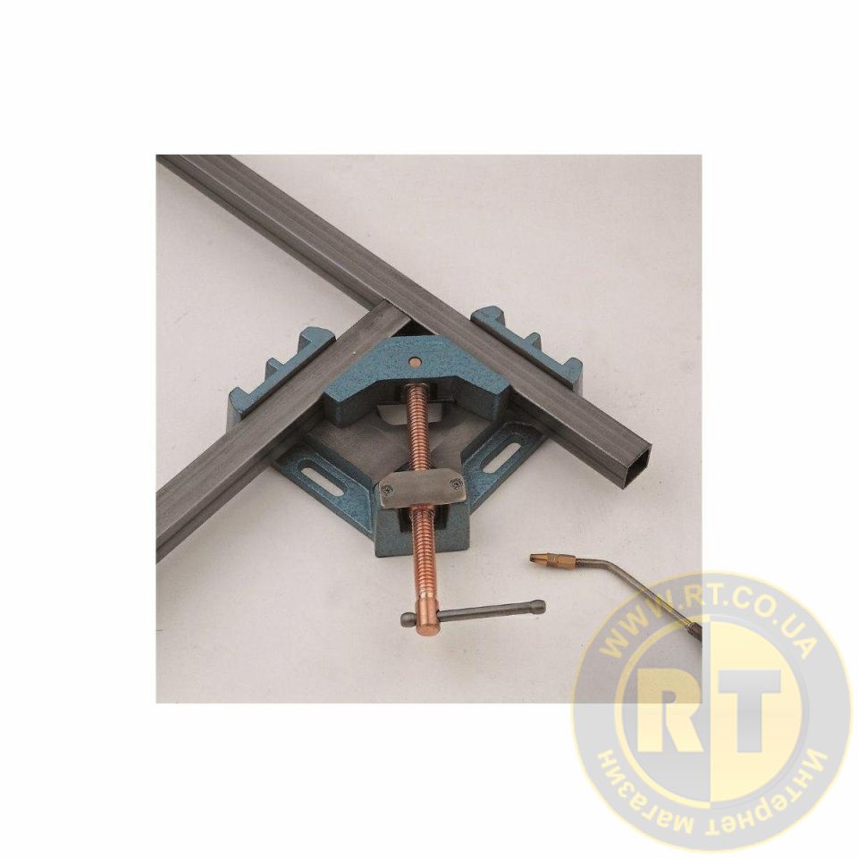Угловий затискувач для зварювання виготовлений з легкого чугуну, що забезпечує йому не тільки високу міцність, але і легкість. Затискач використовується при створенні кутових з'єднань під прямим кутом.