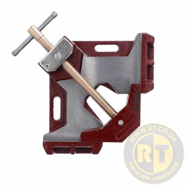 Угловий затискувач для зварювання виготовлений з легкого чугуну, що забезпечує йому не тільки високу міцність, але і легкість. Затискач використовується при створенні кутових з'єднань під прямим кутом.