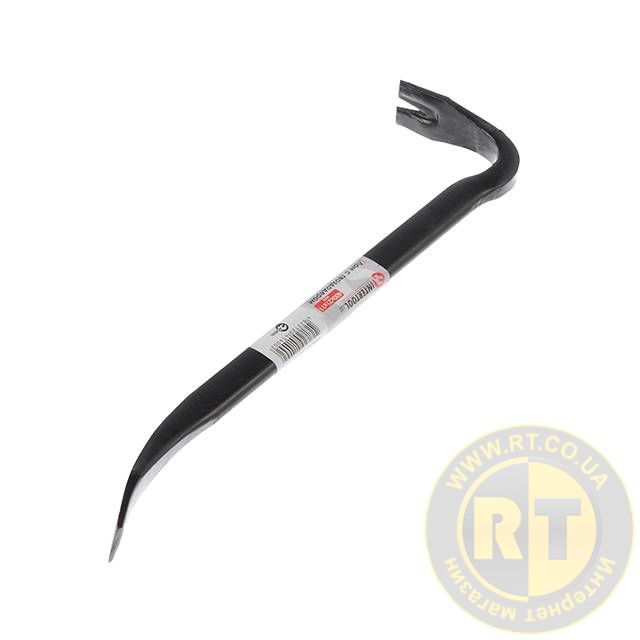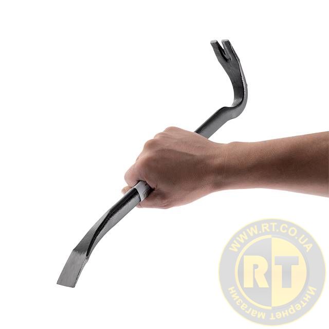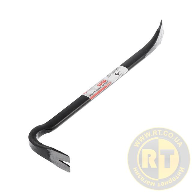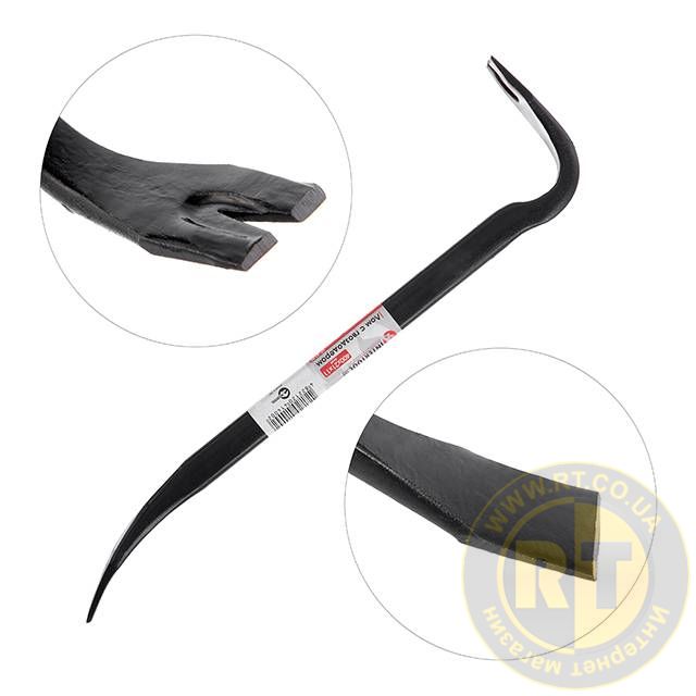 Виготовлений із надміцної загартованої інструментальної сталі для виконання складних демонтажних робіт. Кутовий цвяходер створює опору з високим важелем для зачеплення або підйому, а загострений кінець лома вклинюється у важкодоступні місця. Плоска поверхня цвяходера дозволяє вбивати лом за допомогою молотка.