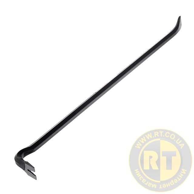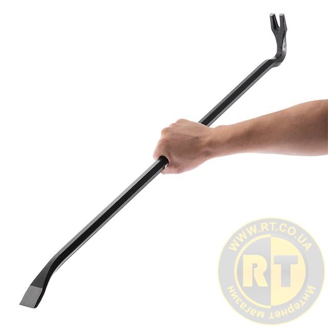 Виготовлений із надміцної загартованої інструментальної сталі для виконання складних демонтажних робіт. Кутовий цвяходер створює опору з високим важелем для зачеплення або підйому, а загострений кінець лома вклинюється у важкодоступні місця. Плоска поверхня цвяходера дозволяє вбивати лом за допомогою молотка.