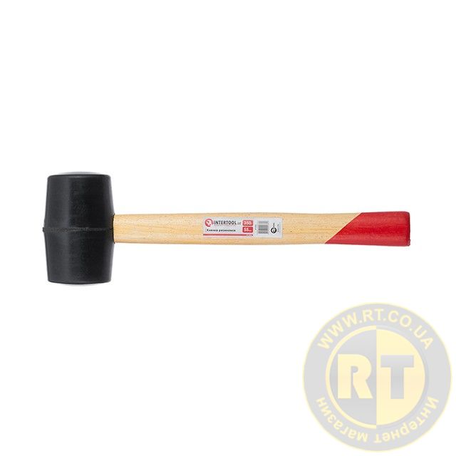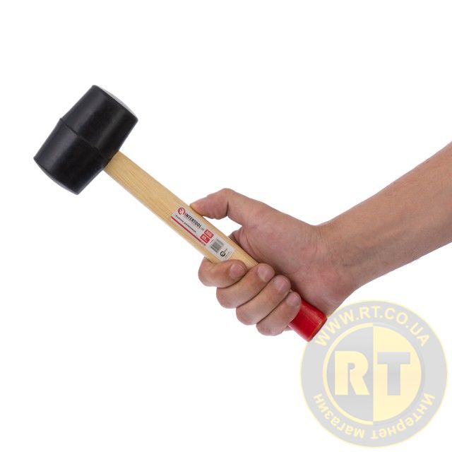 Киянка гумова, 360 г, 45 мм, чорна гума, дерев'яна ручка HT-0236