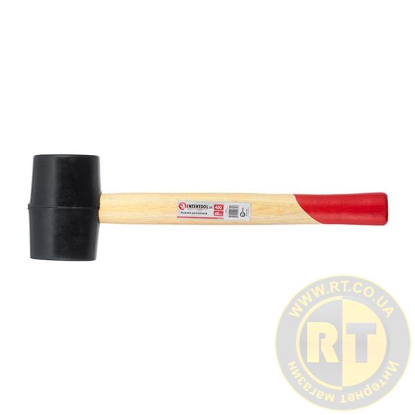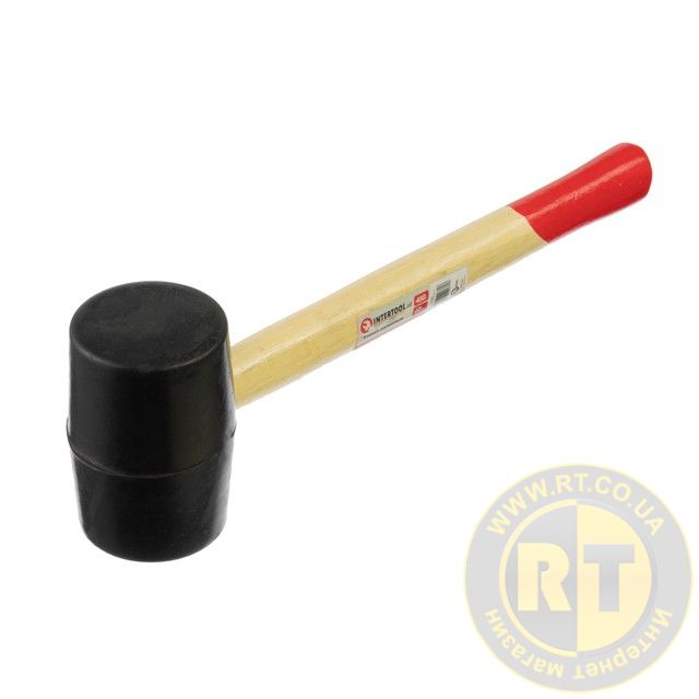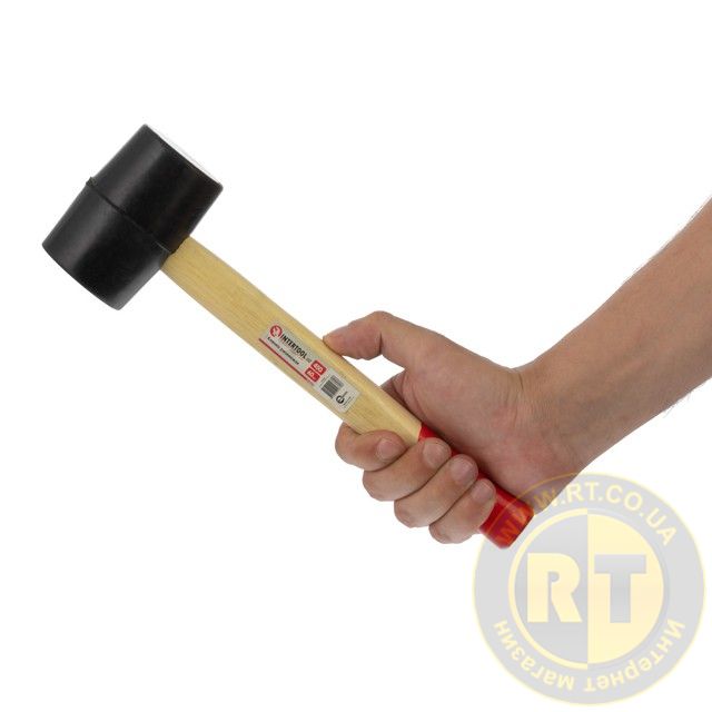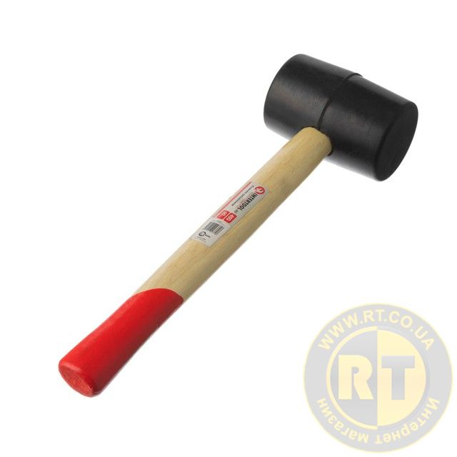Киянка гумова, 470 г, 55 мм, чорна гума, дерев'яна ручка HT-0237