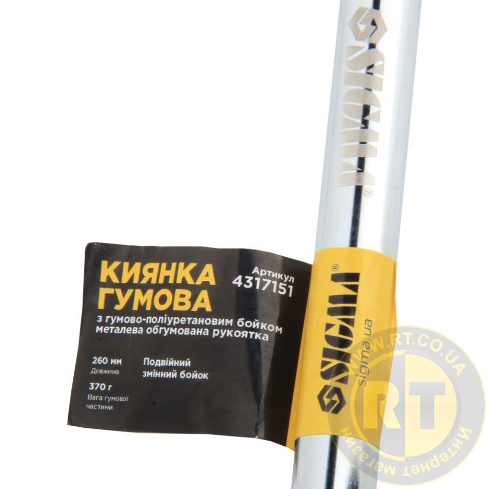 Молоток-киянка з гумово-поліуретановим бойком 270г металева гумова рукоятка SIGMA 4317151
