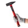 Ручка виготовлена з фібрегласу (скловолокна) – матеріалу, який добре зарекомендував себе у використанні. Він не розсихається з часом, не схильний до розбухання при контакті з водою, а також досить легкий. Фібергласс відмінно поглинає вібрацію від удару та допомагає знизити силу віддачі на руки майстра. Завдяки прогумованому покриттю молоток надійно фіксується в руці та не вислизає навіть у дощову погоду.