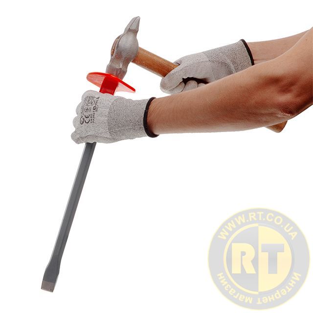 Інструмент виготовлений з високоякісної інструментальної сталі, робоче лезо додатково загартоване для забезпечення більшої міцності та довговічності. Ручка ергономічної форми під пальці забезпечує зручну утримання під час роботи, користувач надійно тримає інструмент, що сприяє точній роботі. Спеціальний майданчик на торці збільшує ударну площу та захищає руки від випадкового удару молотком.