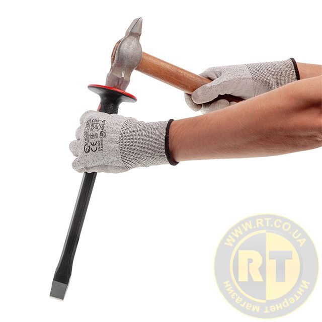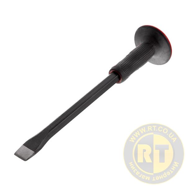 Інструмент виготовлений з високоякісної інструментальної сталі, робоче лезо додатково загартоване для забезпечення більшої міцності та довговічності. Ручка ергономічної форми, виготовлена із сучасного матеріалу – скловолокна. Міцний та легкий, він забезпечує максимальний комфорт під час інтенсивних робіт. Гумове покриття дозволяє надійно утримувати інструмент, що сприяє точній роботі. Спеціальний майданчик на торці збільшує ударну площу та захищає руки від випадкового удару молотком.