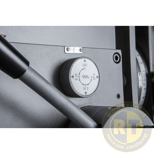 Верстат оснащений автоматичною подачею шпинделя пінолі, має 3 швидкості – 0,12; 0,18; 0,25 мм/об. Наявність мікрометричної подачі дозволяє встановити інструмент на потрібну глибину в ручному режимі.