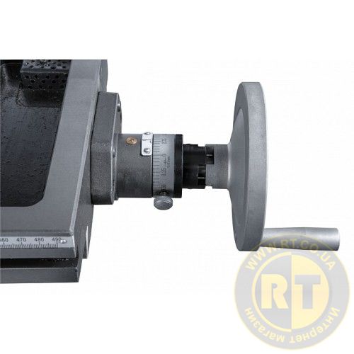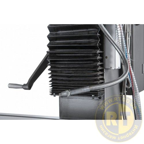 Максимальний виліт шпинделя становить 120 мм. Для збільшення продуктивності та зручності обробки великогабаритних деталей верстат додатково оснащений механізованим приводом по осі Z.