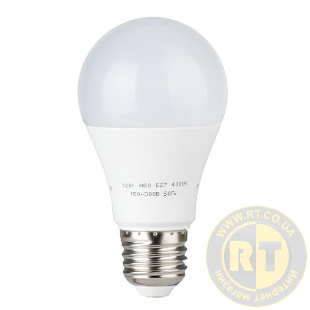 Лампа світлодіодна LED A60, E27, 12 Вт, 150-300 В, 4000 K, 30000 год, гарантія 3 роки INTERTOOL LL-0015