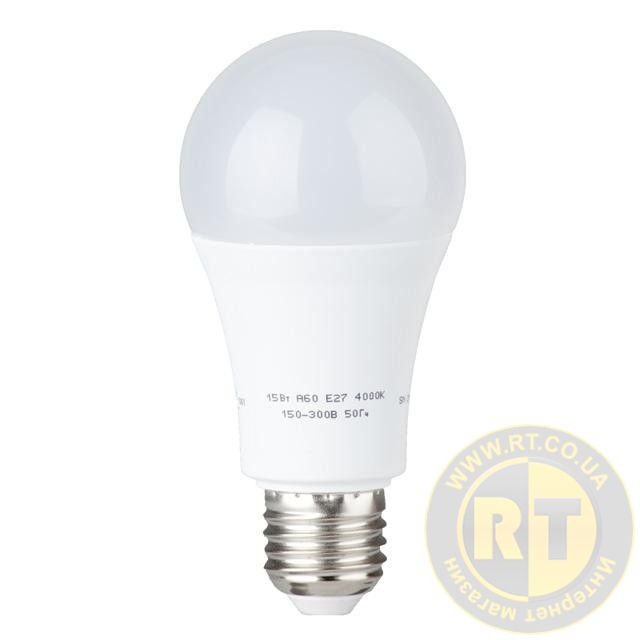 Лампа світлодіодна LED A60, E27, 15 Вт, 150-300 В, 4000 K, 30000 год, гарантія 3 роки INTERTOOL LL-0017