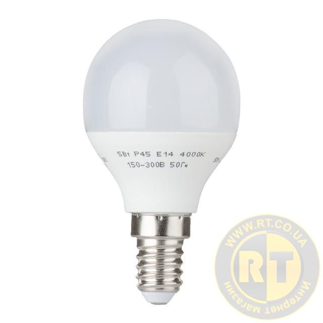 Лампа світлодіодна LED P45, E14, 5 Вт, 150-300 В, 4000 K, 30000 год, гарантія 3 роки INTERTOOL LL-0102