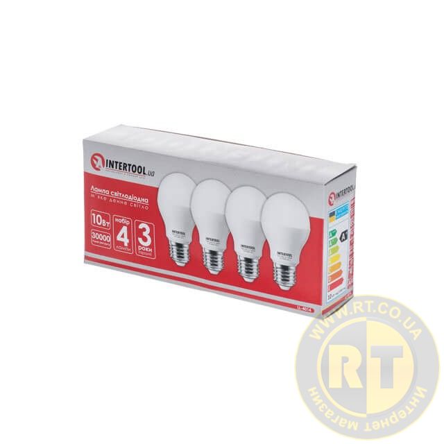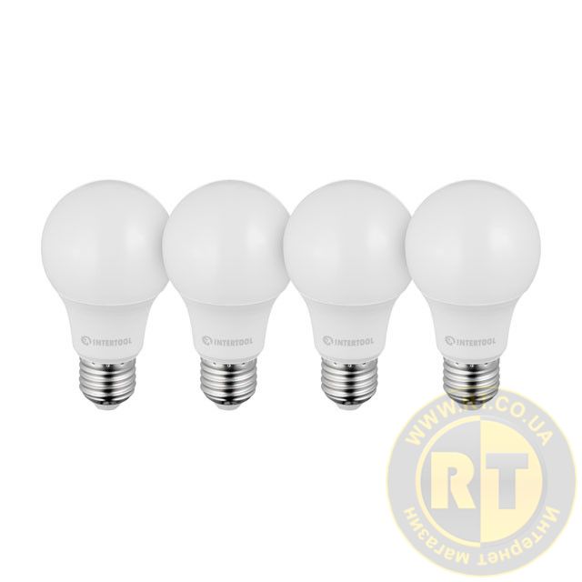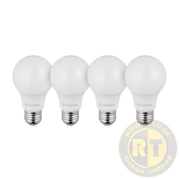 Лампи світлодіодні, набір 4 од., LL-0014, LED A60, E27, 10 Вт, 150-300 В, 4000 K, 30000 год, гарантія 3 роки INTERTOOL LL-4014