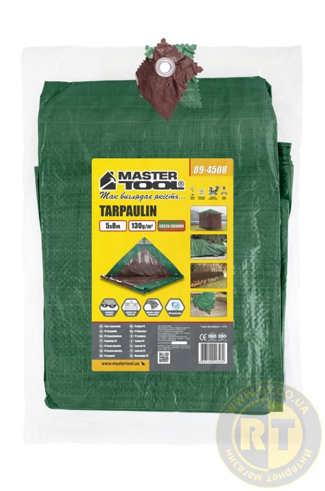 Тент GREEN/BROWN 5×8 м двосторонній 130 г/м² MASTERTOOL 89-4508