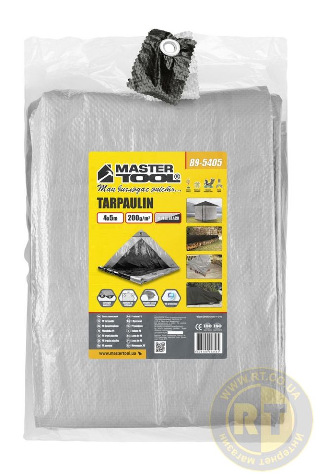 Тент SILVER/BLACK 4×5 м двосторонній 200 г/м² MASTERTOOL 89-5405