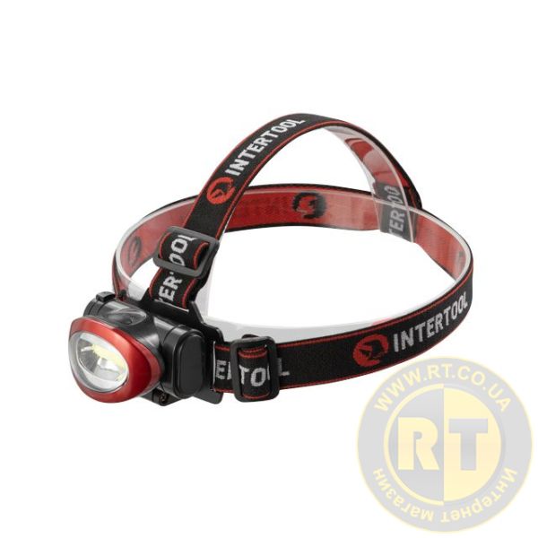 Ліхтар налобний світлодіодний, пиловологозахищений корпус, 3 Вт COB, 150 лм, батарейки 3 ААА INTERTOOL LB-0304
