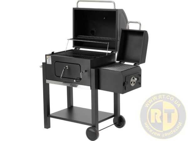 Функціональний портативний вугільний гриль з коптильнею дозволяє готувати всілякі страви на відкритому повітрі.
