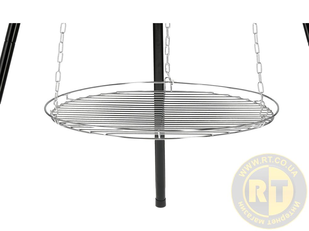 - Хромовані грати легкі, міцні, легко чистяться і забезпечують тривалий термін служби. Крім того, грати мають високі борти, щоб запобігти падінню їжі. Ґрати можна підвісити двома способами – на регульованому ланцюгу або на штативі