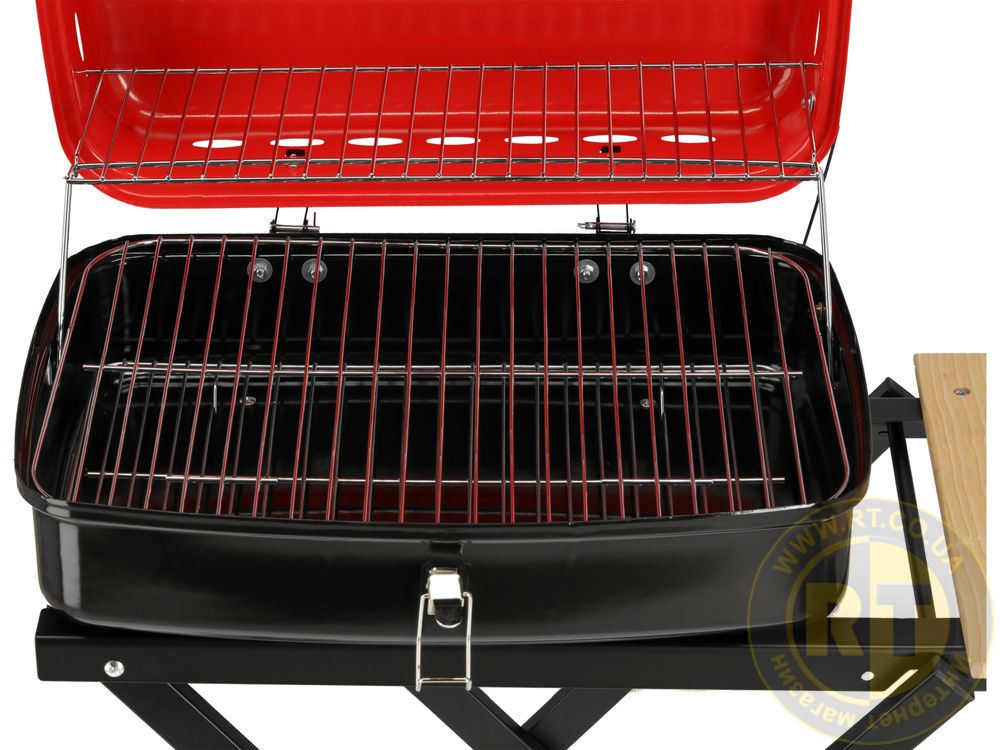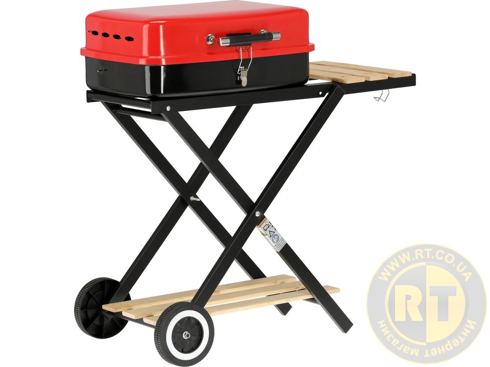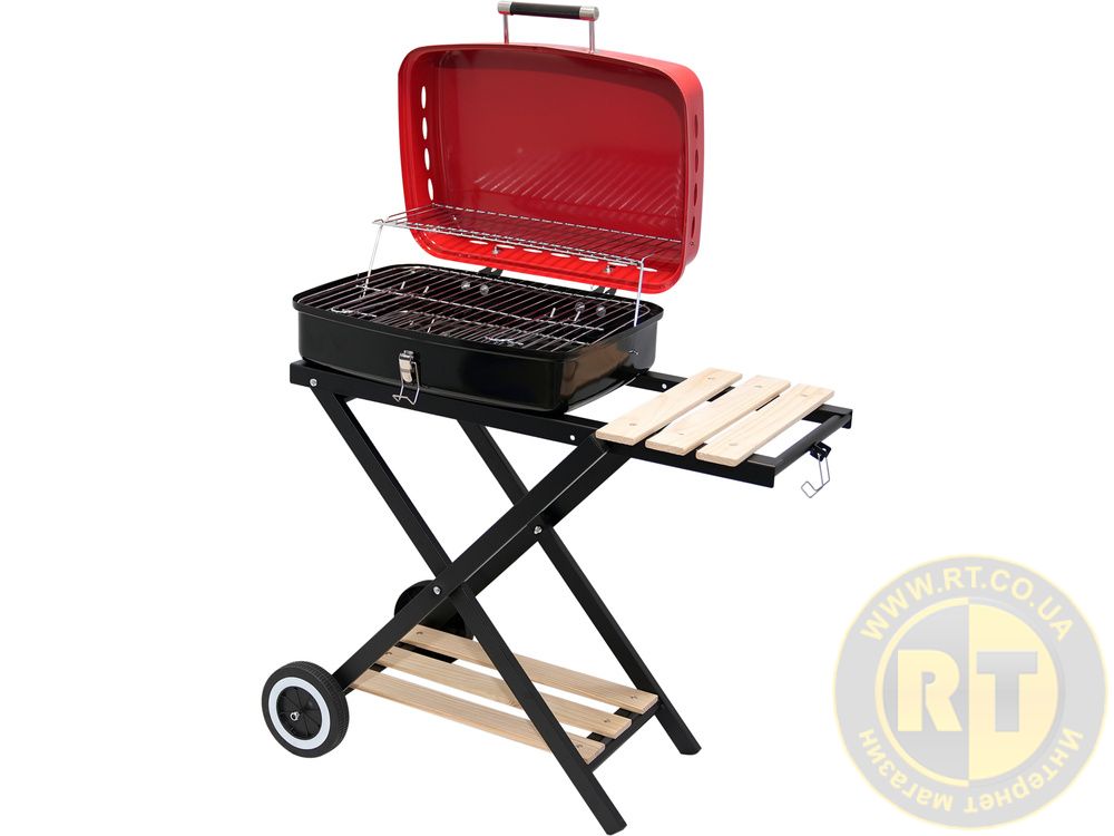 Він оснащений додатковими зручностями – бічними та нижніми полицями, транспортними колесами, вентиляційними отворами та гратами для вугілля.