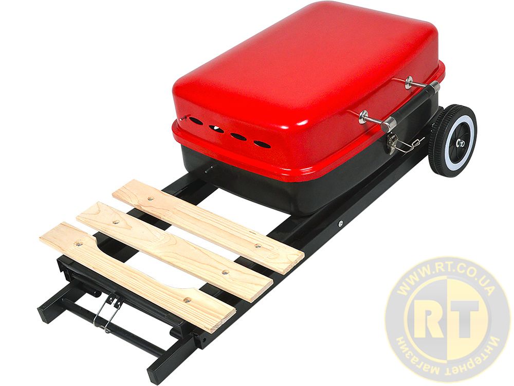 - бічна ручка та 2 транспортні колеса для транспортування гриля