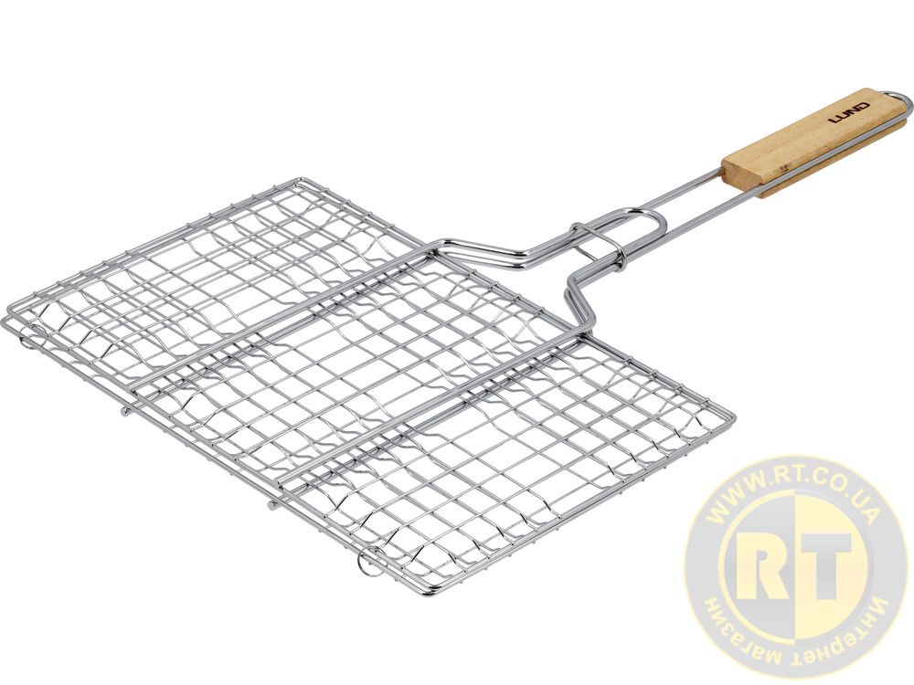 Портативна, складна решітка для гриля , яка містить інгредієнти в одному місці, запобігаючи їх падінню з решітки.