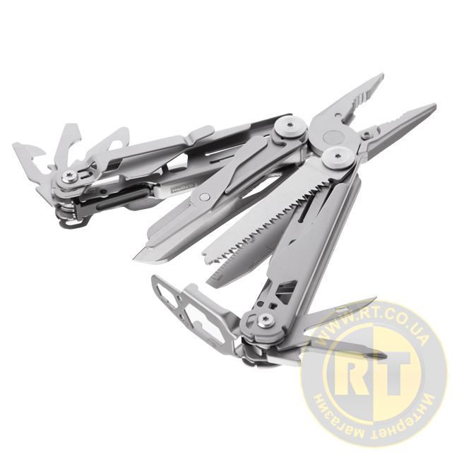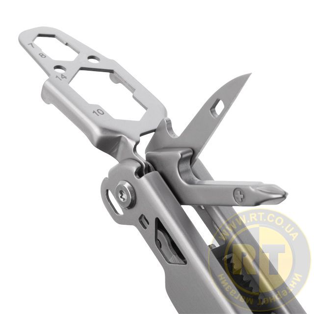 Мультиінструмент має 12 різноманітних інструментів, які розміщуються в легкому і компактному корпусі. Всі компоненти виготовлені зі сталі 440А, стійкої до появи корозії, яка має відмінні показники зносостійкості. Ніж мультитула має заводське професійне заточування. Кусачки інструмента оснащені змінними губками, які за необхідності можна замінити.