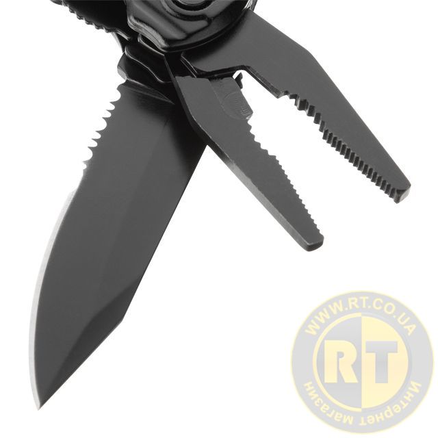Ніж мультитула має заводське професійне заточування, виготовлений зі сталі 420J2. Загартована сталь стійка до іржі та вкрита захисним чорним матовим шаром, що вбереже від сколів і тріщин. Замок ножа класичний і невибагливий LinerLock, захищає від випадкового складання, він простий в експлуатації та не боїться бруду.