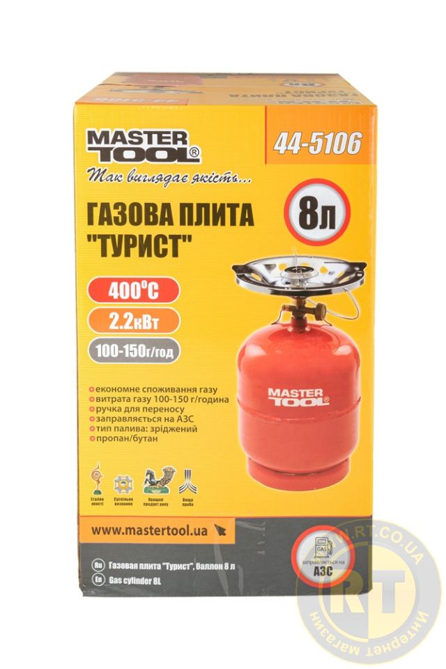Комплект газовий кемпінг "Турист" балон 8 л 2.2 кВт 100-150 г/год. 16 Bar G30/G31 I3P(50) MASTERTOOL 44-5106