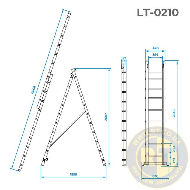 Алюмінієві сходи LT-0210 виготовлені з надміцного, легкого, стійкого до корозії алюмінієвого профілю. Сходи стійкі та не ковзають по будь-яких поверхнях, завдяки надійним пластиковим ніжкам, вони також захищають меблі й підлогу від ум'ятин та подряпин. Рифлені сходинки не дадуть нозі зіслизнути під час роботи. Модель розрахована на тривалий строк експлуатації та відповідає європейському стандарту якості EN 131.