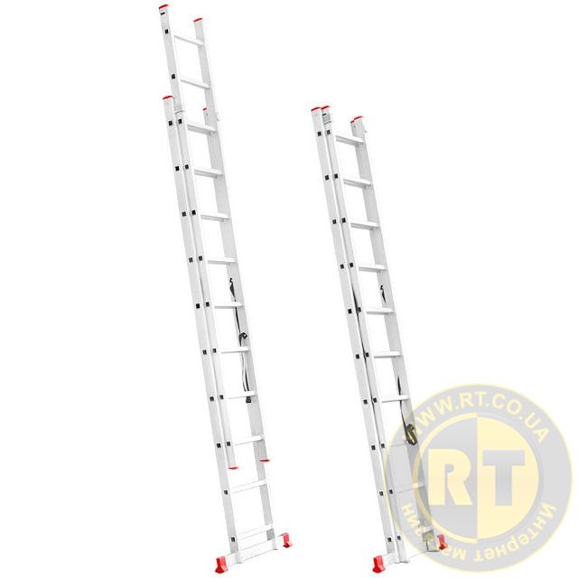 Складана двосекційна драбина стане у пригоді в будь-якій ситуації як професійним майстрам для роботи на висоті, так і для побутових потреб, а також працівникам складів, магазинів тощо. Драбина універсальна і підходить під будь-які завдання, максимальна висота становить 4.8 метри, при цьому сходи можуть трансформуватися в будь-яке з трьох положень. Вони зручні для використання в домашньому господарстві, наприклад, замінити лампочки, пофарбувати стіни, помити вікна, також їх можна використовувати як сходи на дах та ін.