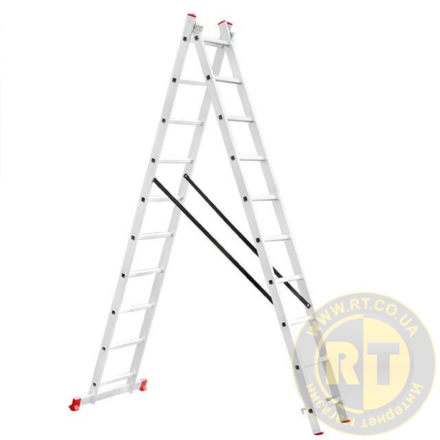 Драбина алюмінієва, 2‑секційна універсальна розкладна, 2×10 сход., 4,81 м, 150 кг INTERTOOL LT-0210