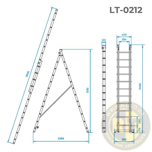 Драбина алюмінієва, 2‑секційна універсальна розкладна, 2×12 сход., 5,93 м, 150 кг INTERTOOL LT-0212Драбина алюмінієва, 2‑секційна універсальна розкладна, 2×12 сход., 5,93 м, 150 кг INTERTOOL LT-0212. Докладніше...12 вид.5926 мм5 999грн