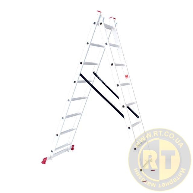 Складана двосекційна драбина стане у пригоді в будь-якій ситуації як професійним майстрам для роботи на висоті, так і для побутових потреб, а також працівникам складів, магазинів тощо. Драбина універсальна і підходить під будь-які завдання, максимальна висота становить 3,68 метри, при цьому сходи можуть трансформуватися в будь-яке з трьох положень. Вона зручна для використання в домашньому господарстві, наприклад, замінити лампочки, пофарбувати стіни, помити вікна, також її можна використовувати як сходи на дах та ін.