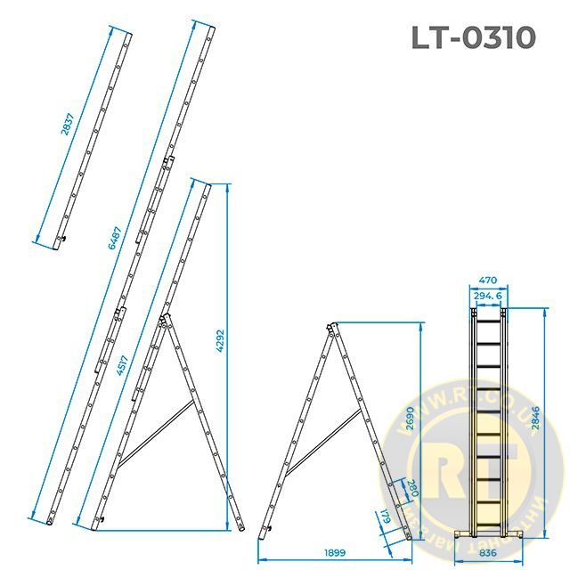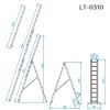 Алюмінієві сходи LT-0310 виготовлені з надміцного, легкого, стійкого до корозії алюмінієвого профілю. Вони стійкі та не ковзають по будь-яких поверхнях завдяки надійним пластиковим ніжкам, що також захищають меблі й підлогу від вм'ятин та подряпин. Рифлені сходинки не дадуть нозі зісковзнути під час роботи. Модель розрахована на тривалий строк експлуатації та відповідає європейському стандарту якості EN 131.