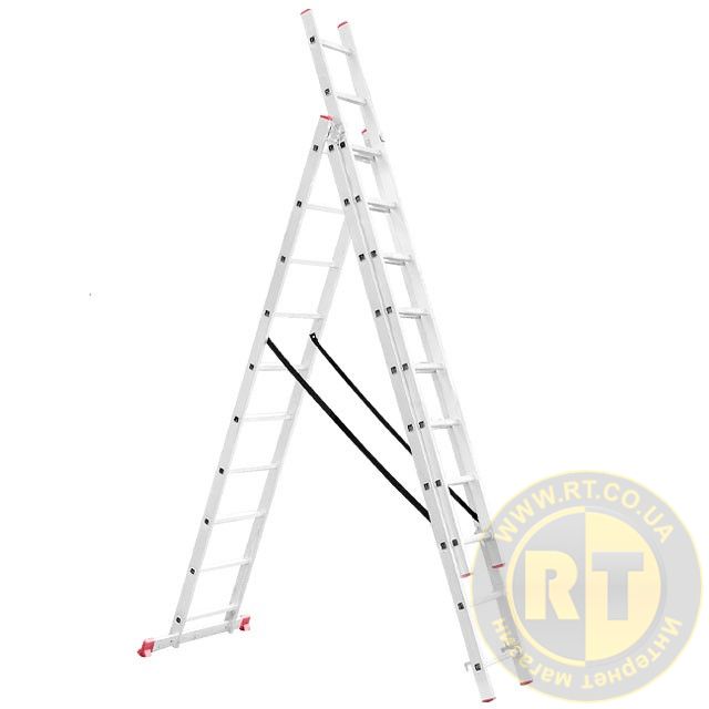 Драбина алюмінієва, 3‑секційна універсальна розкладна, 3×11 сход., 7,33 м, 150 кг INTERTOOL LT-0311Драбина алюмінієва, 3‑секційна універсальна розкладна, 3×11 сход., 7,33 м, 150 кг INTERTOOL LT-0311. Докладніше...11 вид.7330 мм8 499грн