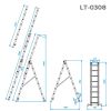 Алюмінієві сходи LT-0308 виготовлені з надміцного, легкого, стійкого до корозії алюмінієвого профілю. Сходи стійкі та не ковзають по будь-яких поверхнях завдяки надійним пластиковим ніжкам, що також захищають меблі й підлогу від ум'ятин та подряпин. Рифлені сходинки не дадуть нозі зісковзнути під час роботи. Модель розрахована на тривалий строк експлуатації та відповідає європейському стандарту якості EN 131.