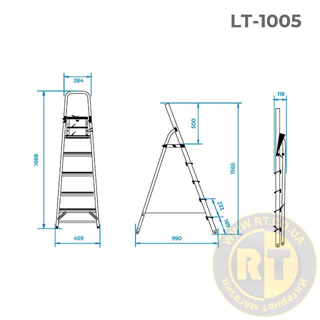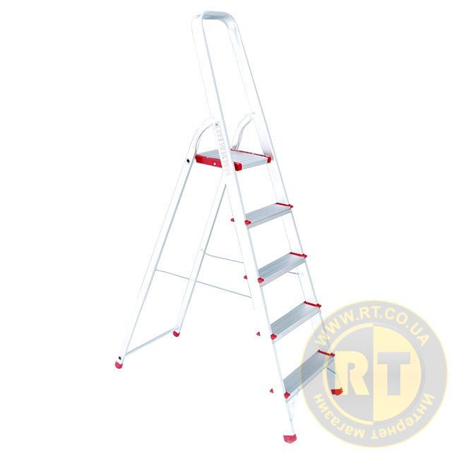 Драбина алюмінієва, 5 сходинок, висота: 1565 мм, висота до платформи: 1065 мм, 150 кг INTERTOOL LT-1005