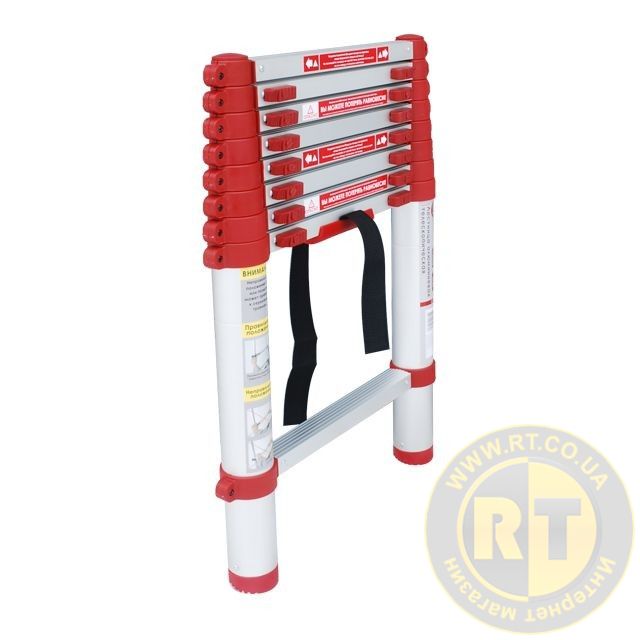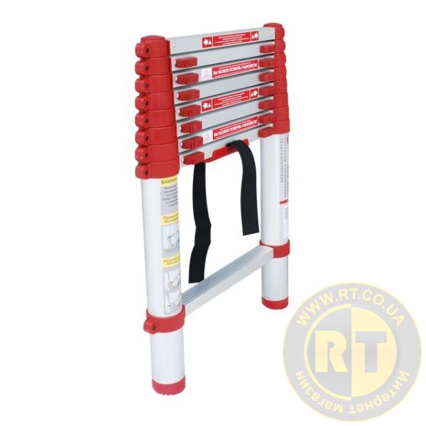 Складана телескопічна драбина стане у пригоді в будь-якій ситуації як професійним майстрам для роботи на висоті, так і для побутових потреб, а також працівникам складів, магазинів тощо. Драбина універсальна і підходить під будь-які завдання, максимальна висота становить 2,5 метри. Вона зручна для використання в домашньому господарстві, наприклад, замінити лампочки, пофарбувати стіни, помити вікна, також її можна використовувати як сходи на дах та ін.