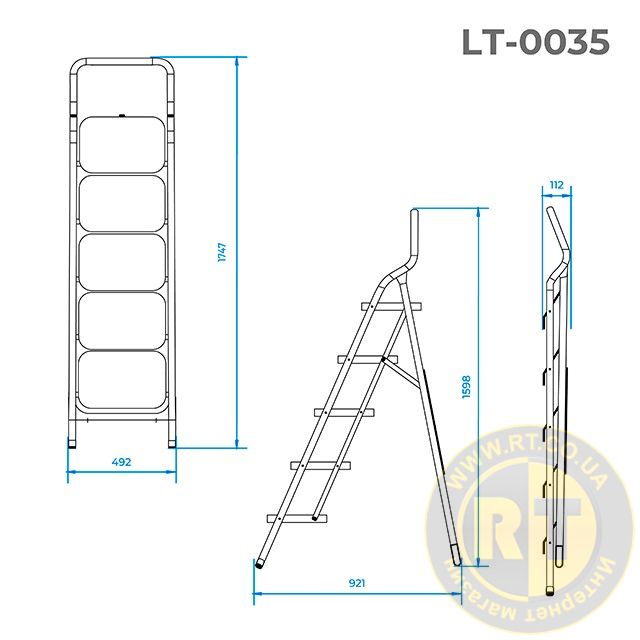 Драбина легко відкривається та розкладається в робоче положення, товщина у складеному вигляді всього 111 мм, не займає багато місця для зберігання. Конструкцію можна легко переносити та транспортувати.