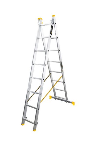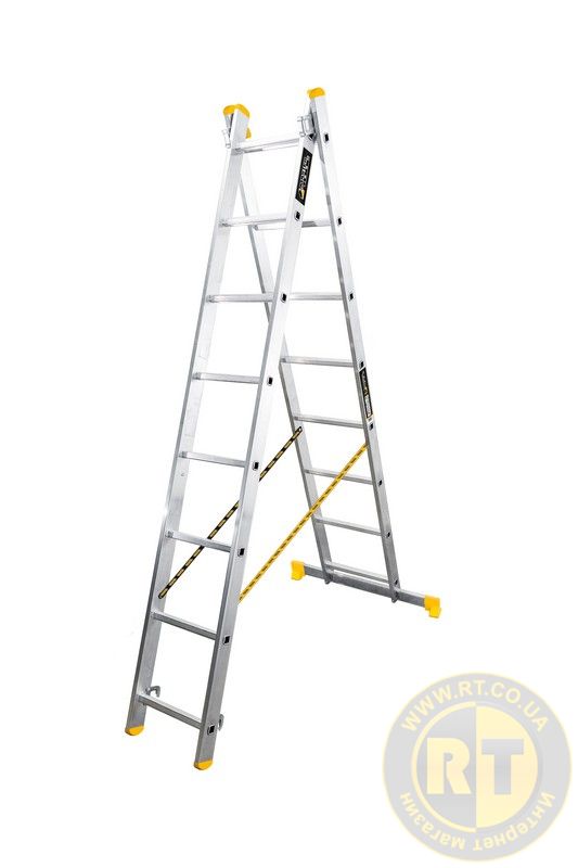 • Широка опорна база з протискольз драбини або приставні сходи • Легка вага при високій міцності • Зручно транспортувати та зберігати • Висока стабільність та безпека Підходить для: • Висотних робіт у приміщенні та на вулиці • Садових та господарських потреб • Ремонтно-монтажних завдань Сходи 2х8 – легкі, зручні та готові до будь-якого виклику! • 2 секції по 8 ступенів — використовується як приставна або у формі сходів • висота до 3,98 м — оптимальна для робіт у приміщенні та на вулиці ; • легка алюмінієва конструкція — зручна у транспортуванні та експлуатації ; для ремонту, монтажу, садових та господарських робіт