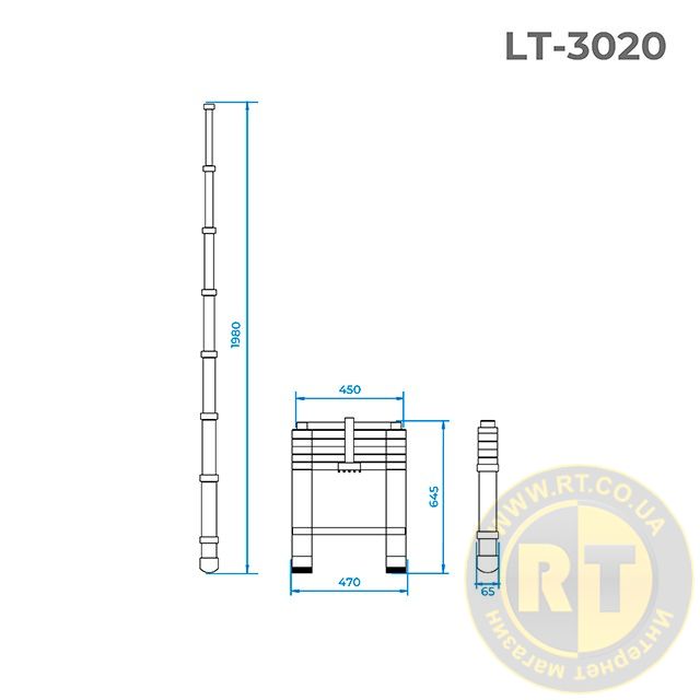 Алюмінієві сходи LT-3020 виготовлені з надміцного, легкого, стійкого до корозії алюмінієвого профілю. Діаметр алюмінієвої труби сходів досягає до 65 мм, а максимальне навантаження становить 150 кг. Сходи стійкі та не ковзають по будь-яких поверхнях завдяки надійним пластиковим ніжкам, що також захищають меблі й підлогу від ум'ятин та подряпин. Рифлені сходинки не дадуть нозі зісковзнути під час роботи. Модель розрахована на тривалий строк експлуатації та відповідає європейському стандарту якості EN 131