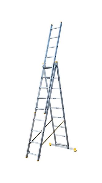 Сходи алюмінієві трисекційні 3х9 — максимум висоти, стабільності та зручності