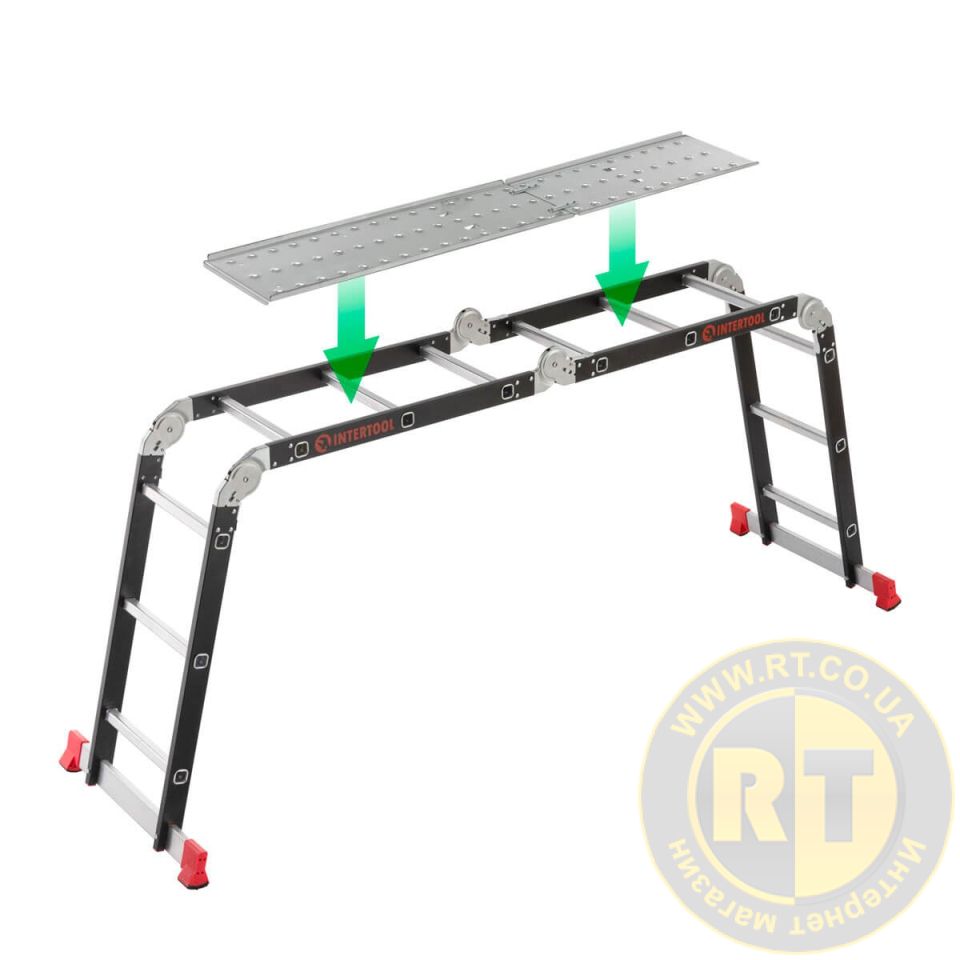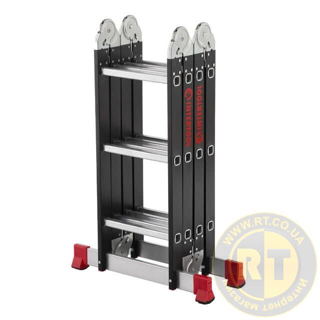 Драбина багатофункціональна трансформер, 4×3 сходинки, сталевий профіль, 3,38 м, 150 кг INTERTOOL LT-0023