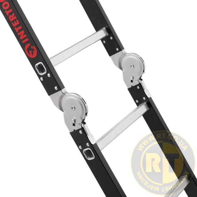 В основі функціональності драбини лежить шарнірний механізм, за допомогою якого ви легко зможете встановить драбину в потрібному вам положенні.