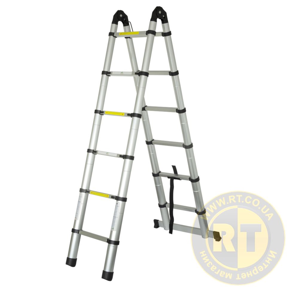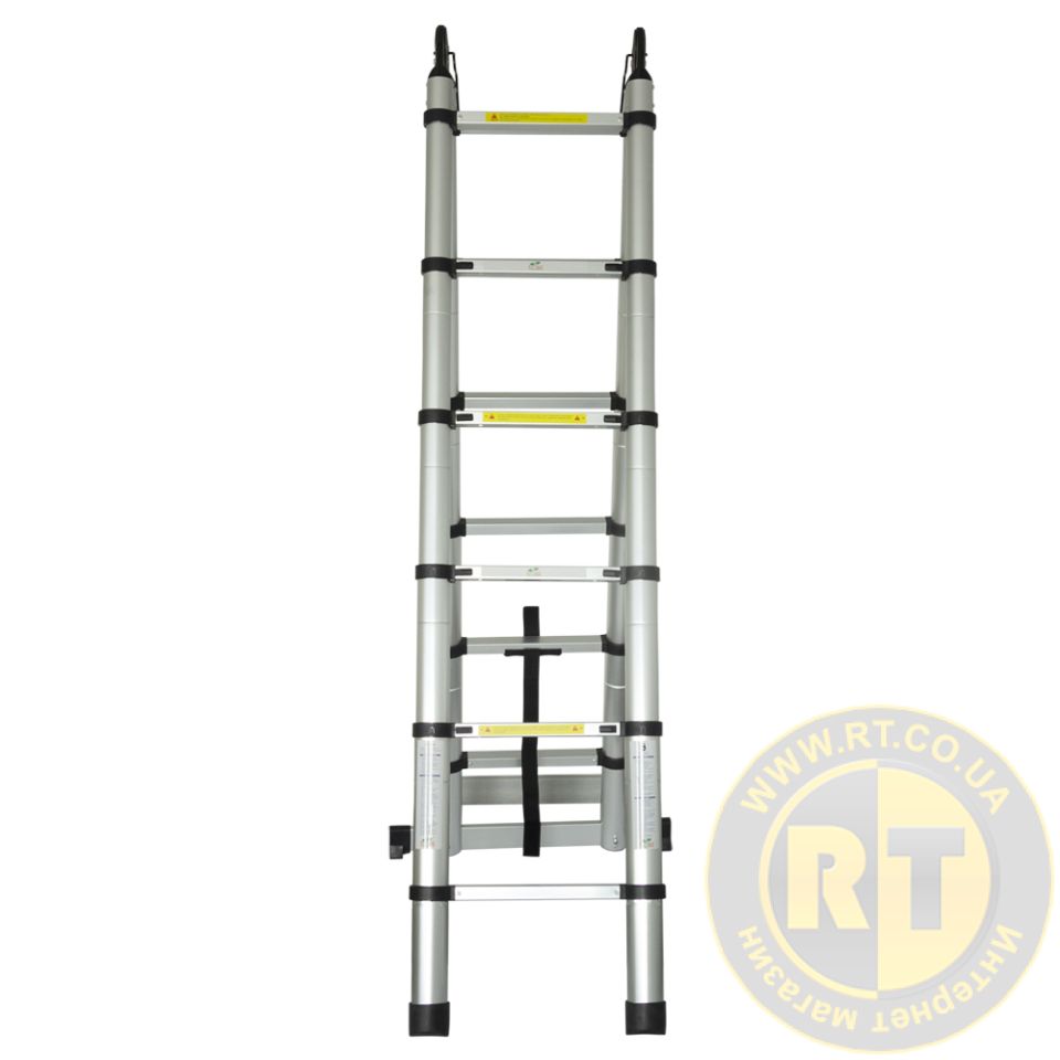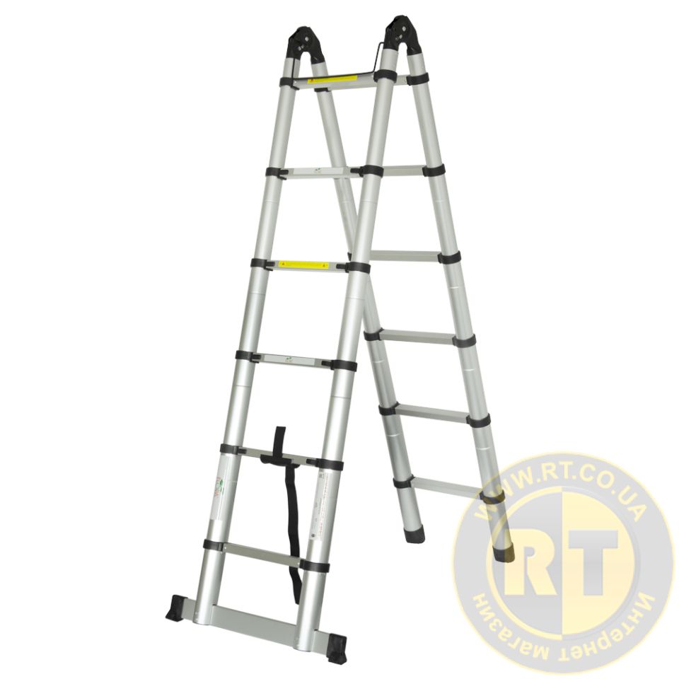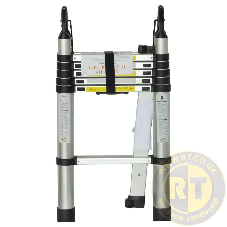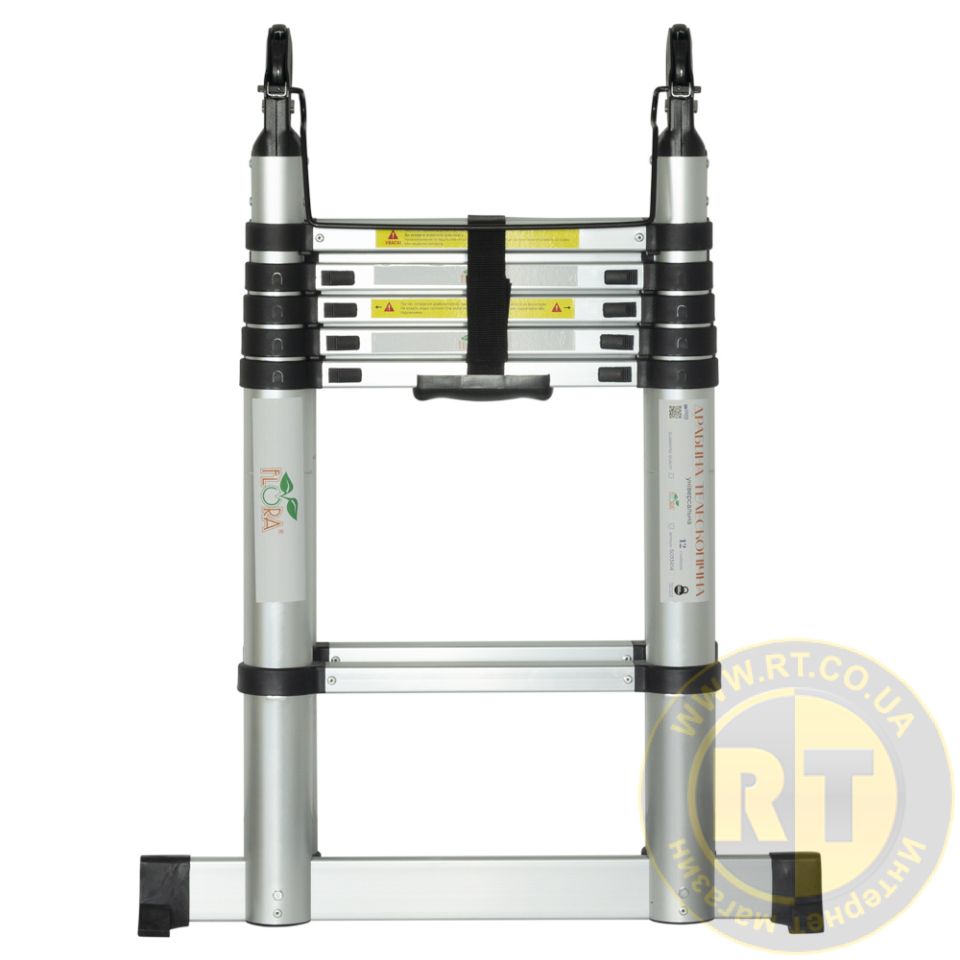 Сходи телескопічні універсальні 2×6 сходинок 3.8м FLORA (5033414) - це розсувна мобільна конструкція, що складається з секцій, що з'єднуються між собою фіксаторами та шарнірами. Форма конструкції може бути у вигляді приставних сходів або драбини.