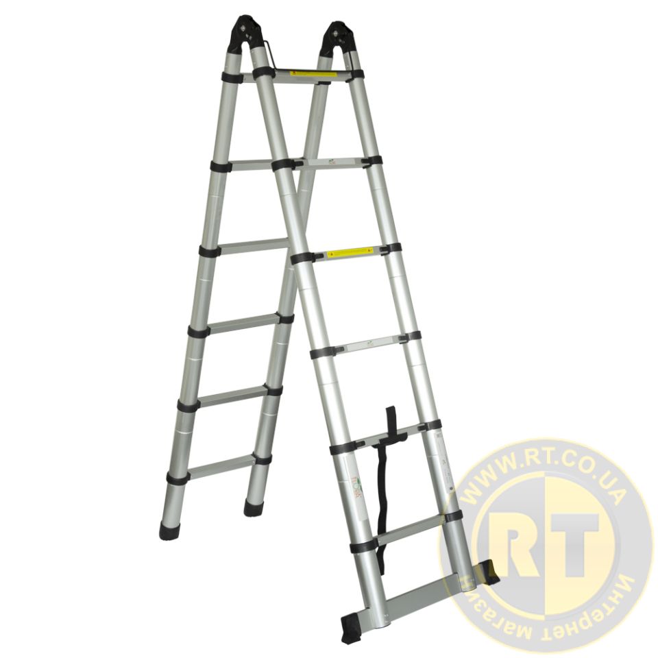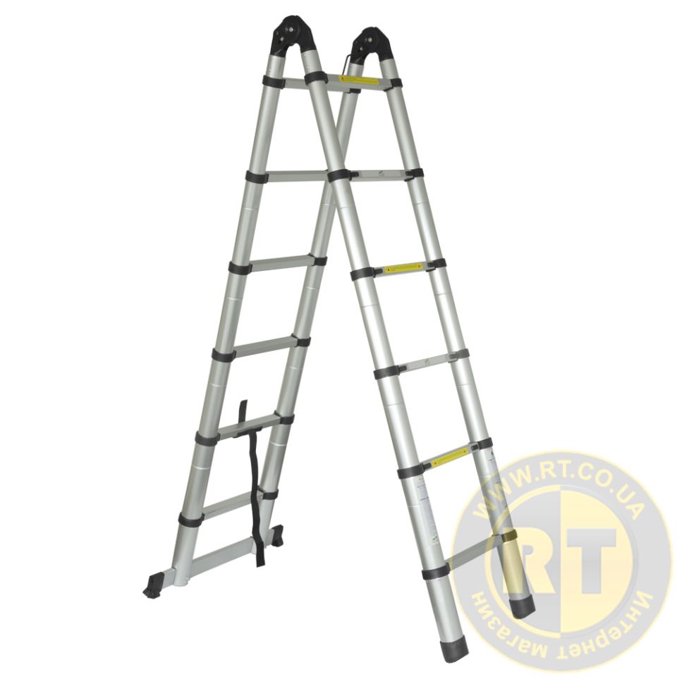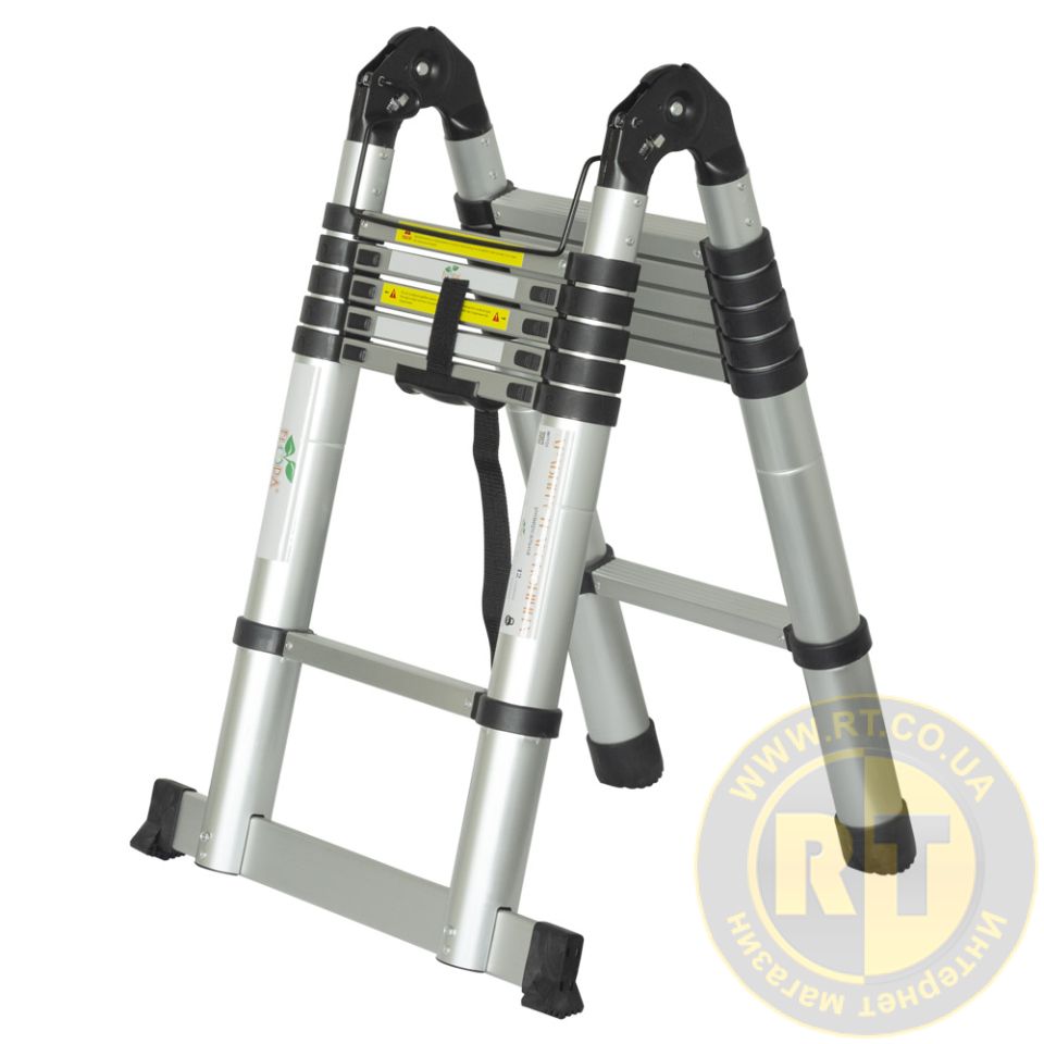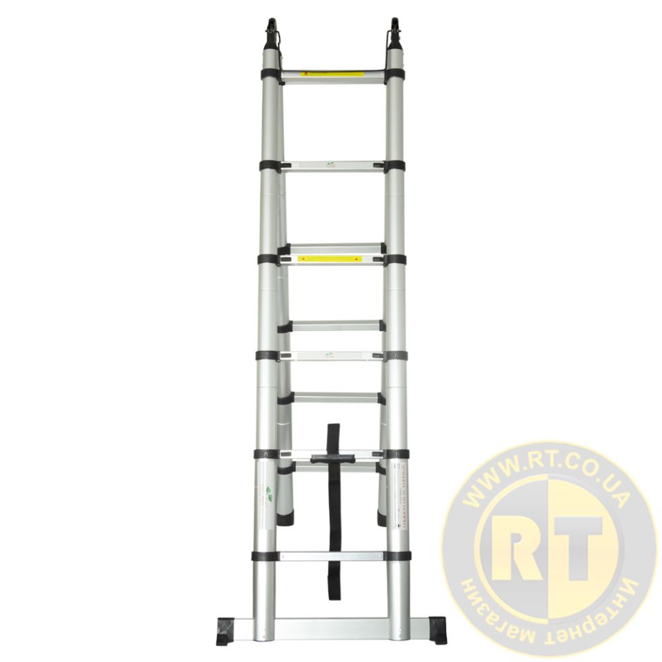 Сходи телескопічні універсальні 2×6 сходинок 3.8м FLORA (5033414) - це розсувна мобільна конструкція, що складається з секцій, що з'єднуються між собою фіксаторами та шарнірами. Форма конструкції може бути у вигляді приставних сходів або драбини.