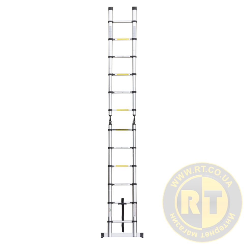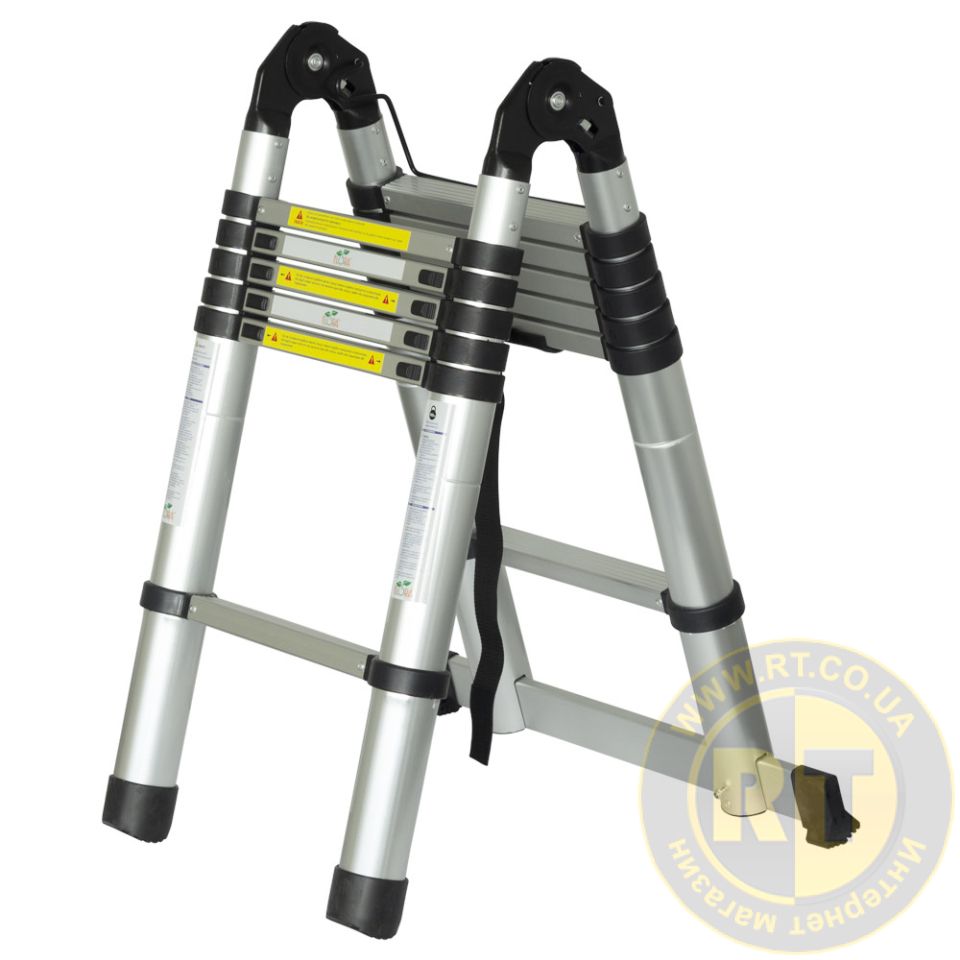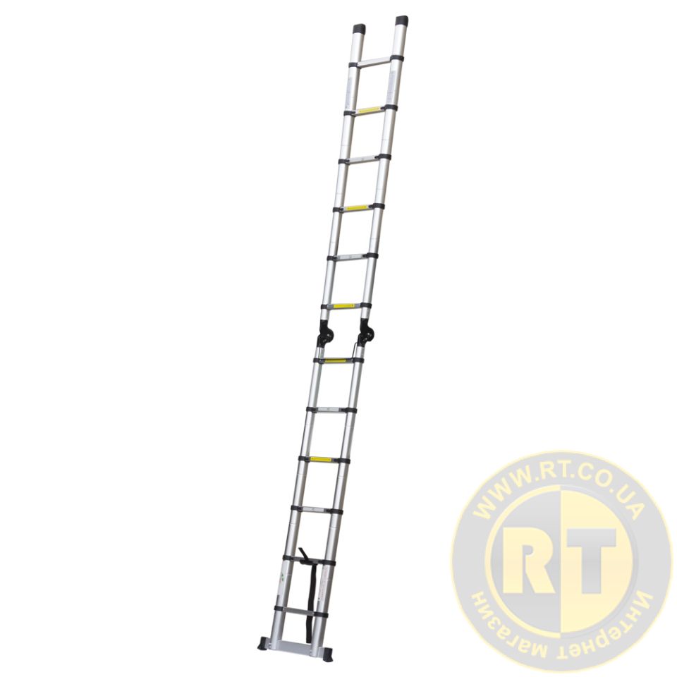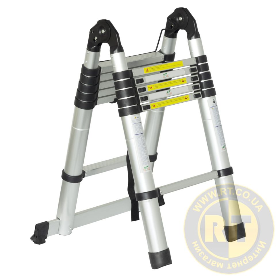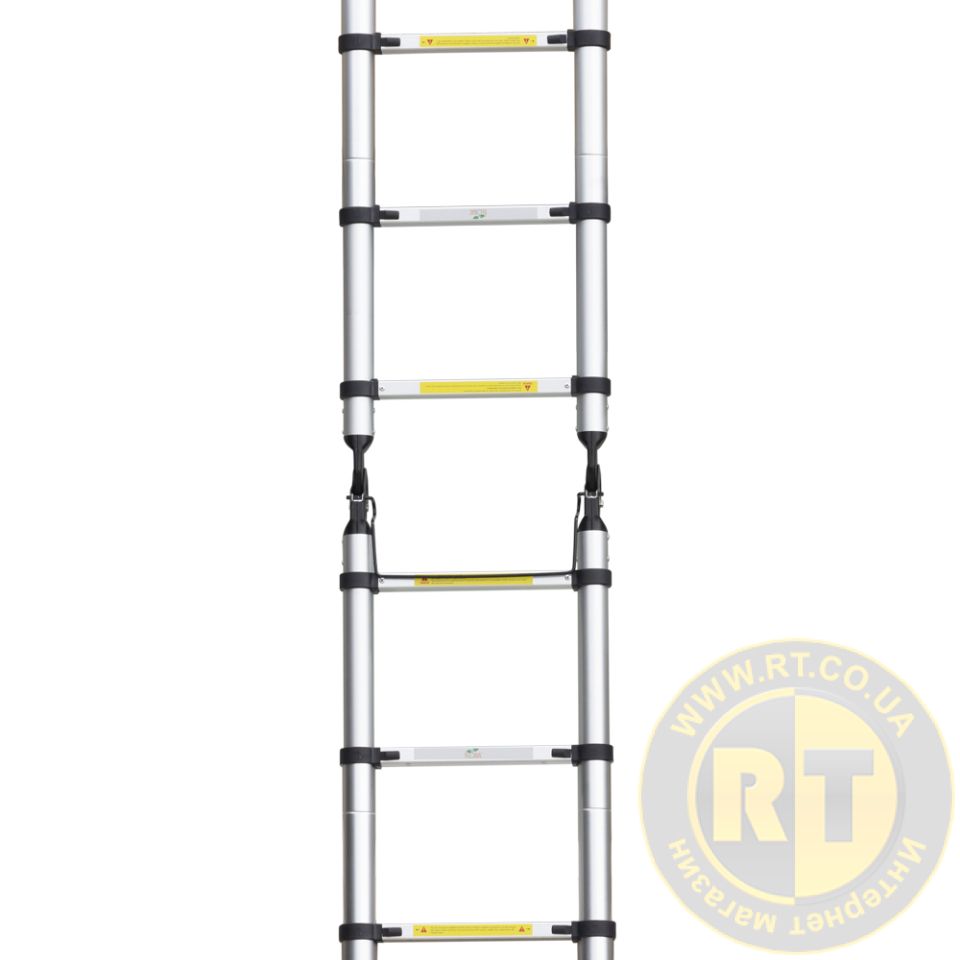 Сходи телескопічні універсальні 2×6 сходинок 3.8м FLORA (5033414) - це розсувна мобільна конструкція, що складається з секцій, що з'єднуються між собою фіксаторами та шарнірами. Форма конструкції може бути у вигляді приставних сходів або драбини.