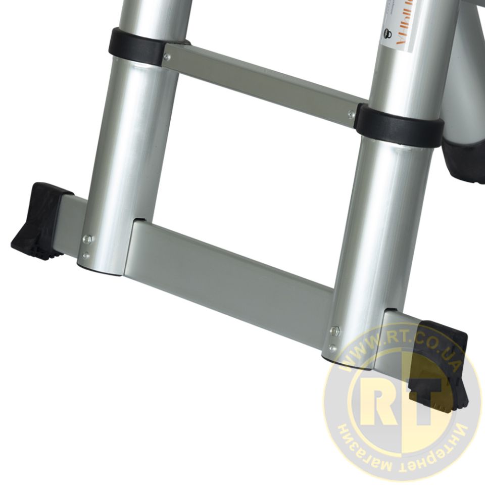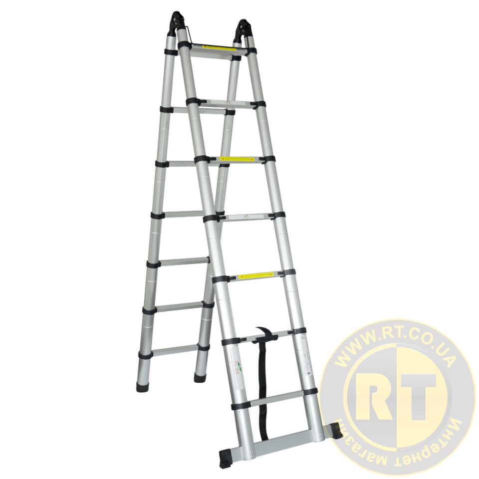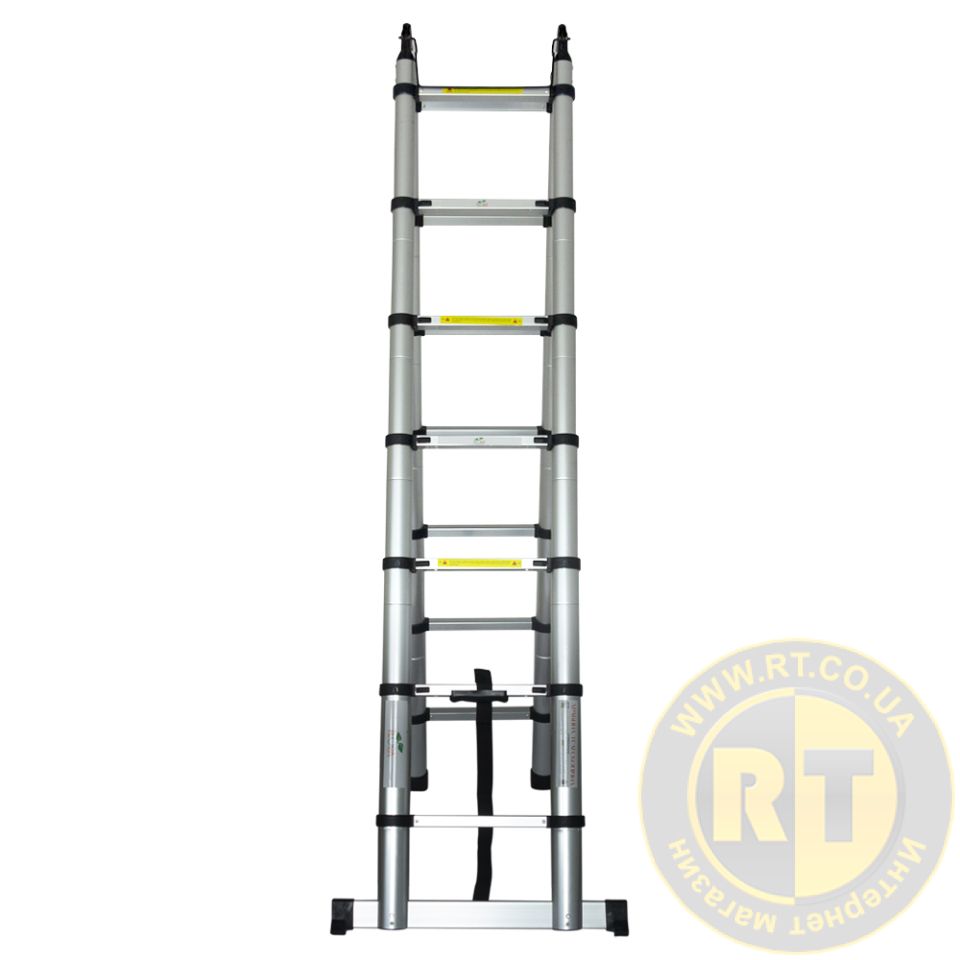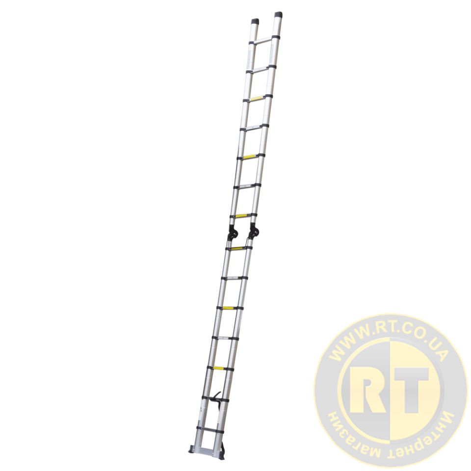 Сходи телескопічні універсальні 2×7 ступенів 4.4м FLORA (5033424) - це розсувна мобільна конструкція, що складається з секцій, які з'єднуються між собою фіксаторами та шарнірами. Форма конструкції може бути у вигляді приставних сходів або драбини.