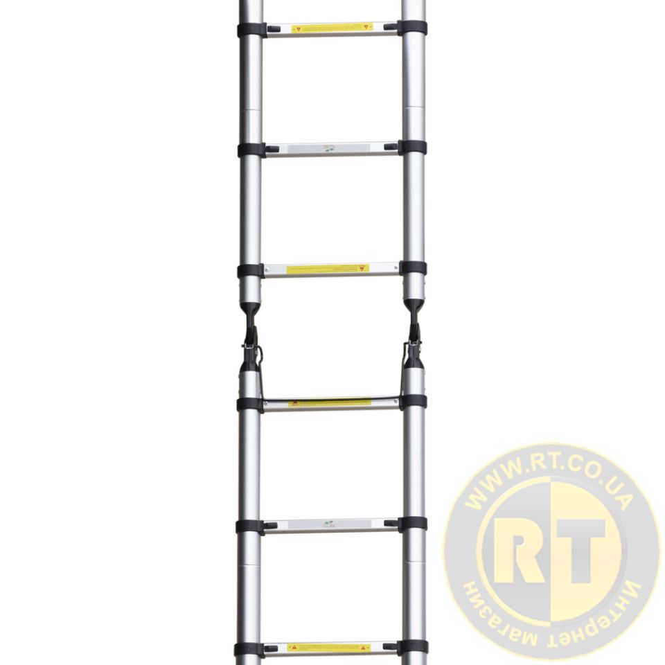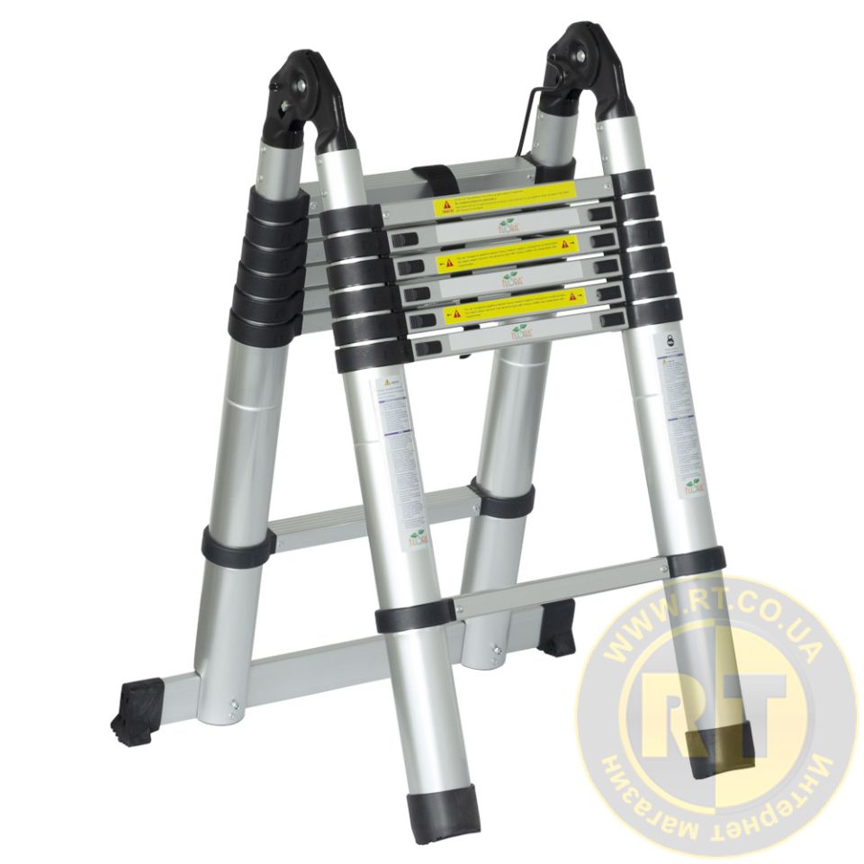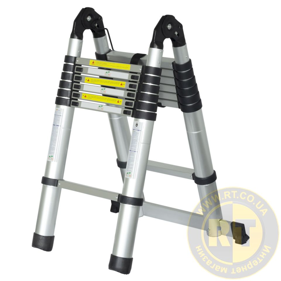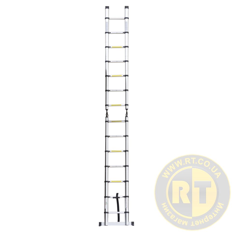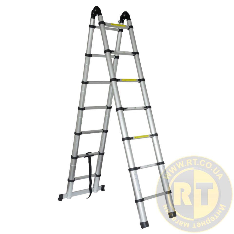 Сходи телескопічні універсальні 2×7 ступенів 4.4м FLORA (5033424) - це розсувна мобільна конструкція, що складається з секцій, які з'єднуються між собою фіксаторами та шарнірами. Форма конструкції може бути у вигляді приставних сходів або драбини.
